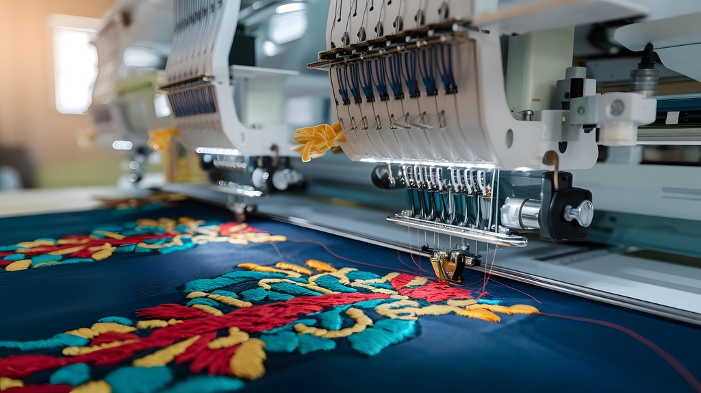 Für eine schnelle Auftragsverarbeitung bieten wir industrielle Dualkopf-Stickmaschinen an.
